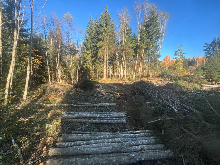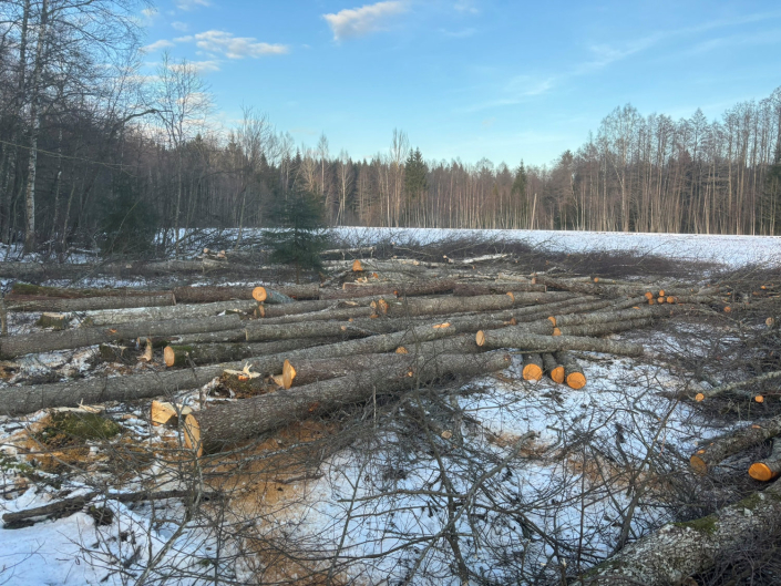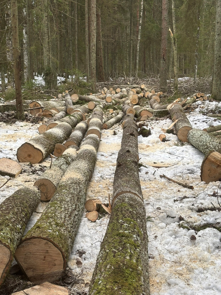 Raiume metsalangilt harvesterijärgsed suured puud.